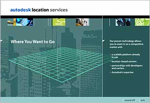 For Autodesk location services product demo developed in Flash, I worked together with a designer and animated and built the interface using ActionScript.